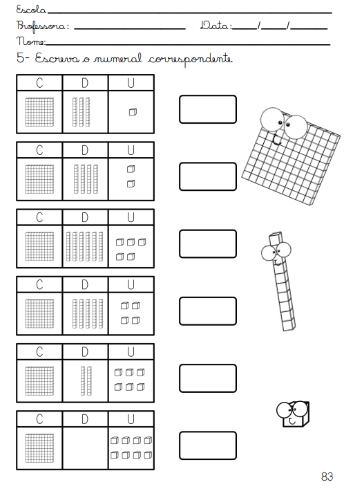 ✔ Sistema de numeração decimal (unidades, dezenas e centenas)